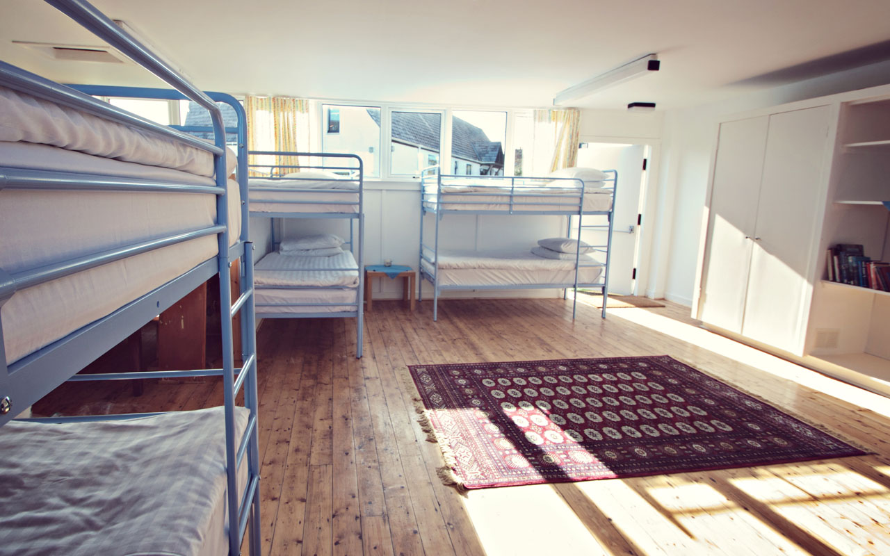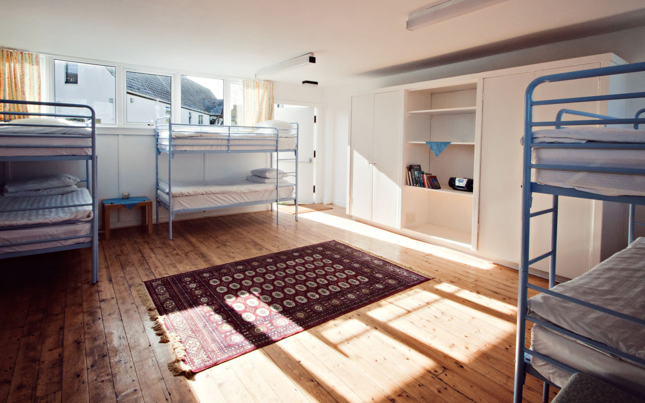 Our large rear hall comfortably accommodates eight guests in full size bunks, with bed linen, towels and two sparkling new shower rooms. Ideally suited to walkers on a budget, families or groups of friends.